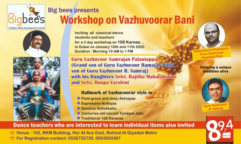 Posted on January 10, 2020January 18, 2020 10th and 11th January 2020 WORKSHOP ON VAZHUVOOR BANI at DUBAI Share this: Click to share on WhatsApp (Opens in new window) WhatsApp Like Loading... Related