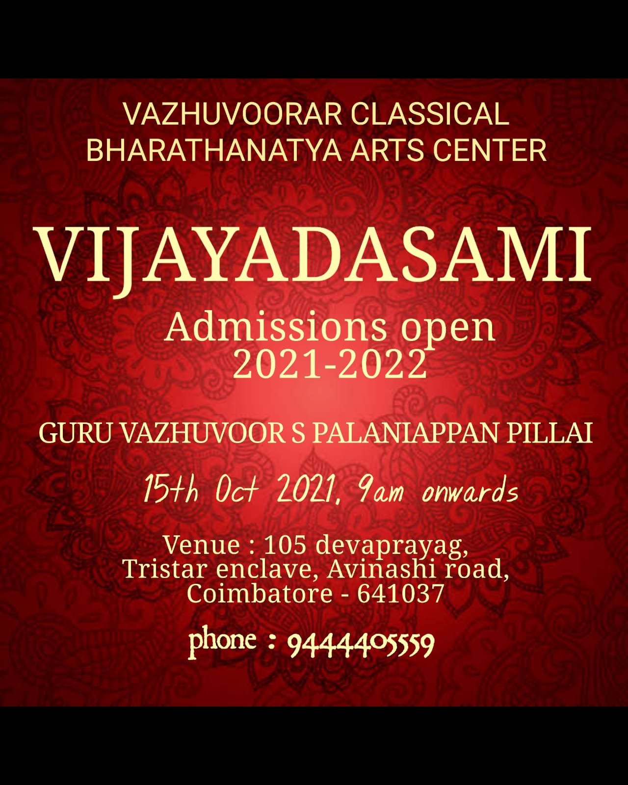 Posted on October 6, 2021 VIJAYADASAMI Admission 2020-2021 Share this: Click to share on WhatsApp (Opens in new window) WhatsApp Like Loading... Related