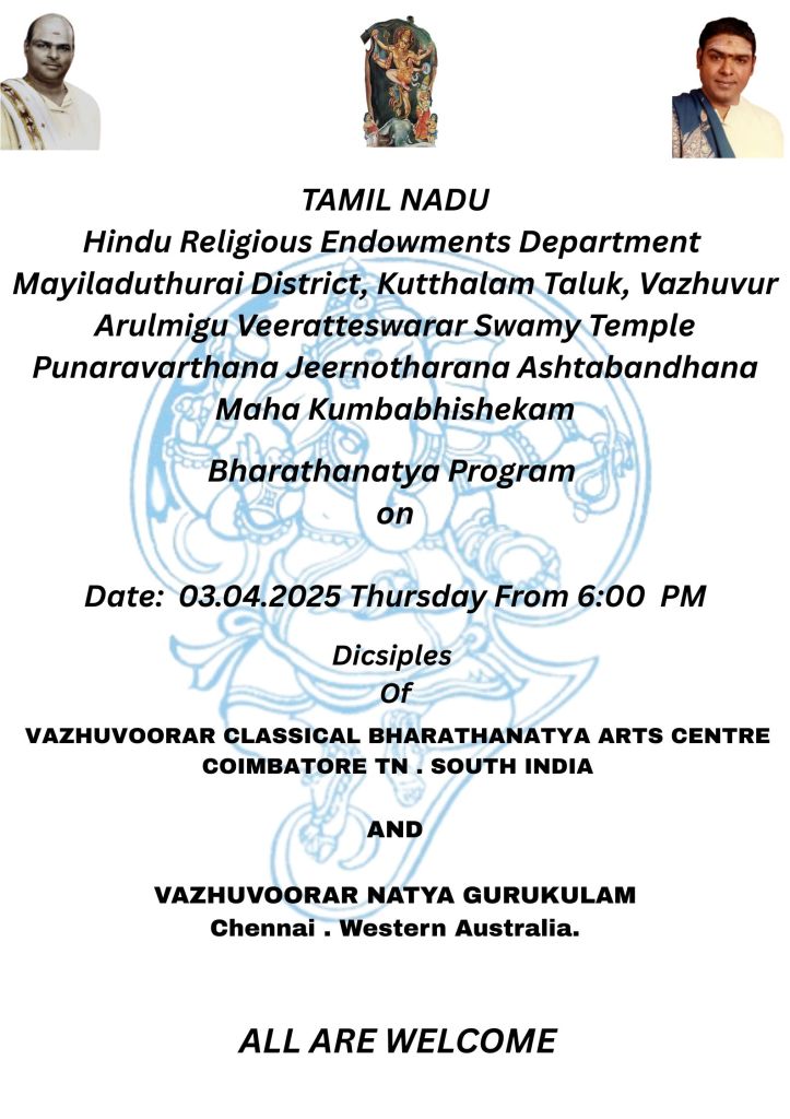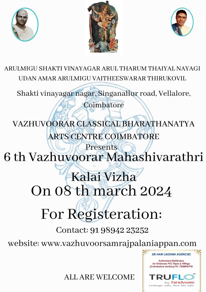 VAZHUVOORAR’S EVENTS-2025 Arangetram BY Selvi Sai Meera 7th VAZHUVOORAR MAHA SHIVARATHRI KALAI VIZHA 26/02/2025 Share this: Click to share on WhatsApp (Opens in new window) WhatsApp Like Loading...